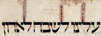 On this page you will notice that part of the original prayer has been rubbed out. If you read Hebrew, you may recognize that this is the Alenu prayer, which, in its pre-censored version, declares the worthlessness of other gods and the truth of the Jewish God. The manuscript, written before the regime of censorship, originally included the full text, but when, in the 16th century, the church became aware of the “dangers” of disseminating many copies of writings in print, manuscripts were retrospectively censored as well, as here.