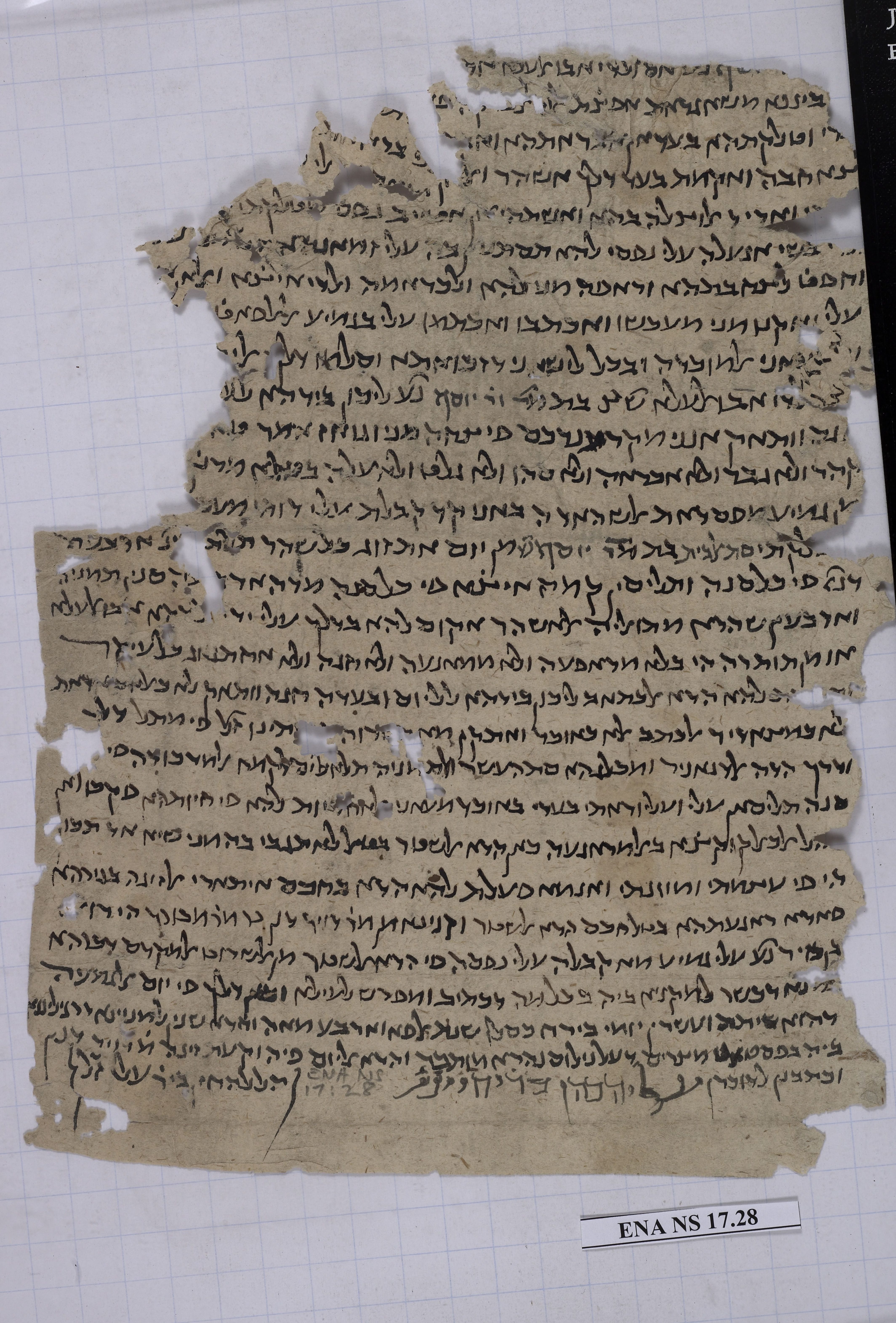 The ketubbah in front of you is from the Cairo Genizah. An ordinary Genizah is a place where sacred Jewish writings that can no longer be used are stored until they are sent for burial. But the Genizah in the Ben Ezra Synagogue in Fustat (Old Cairo) was unique in two significant respects: (1) none of it was ever sent for burial, so it accumulated for nearly 1000 years, from the founding of the synagogue until the discovery of the Genizah by Europeans in the mid-19th century; and (2) the Jews behind the Genizah apparently felt that Hebrew letters themselves were sacred, so anything written with Hebrew characters, including secular documents and writings in Arabic, for which Jews used Hebrew letters, was thrown into the Genizah.