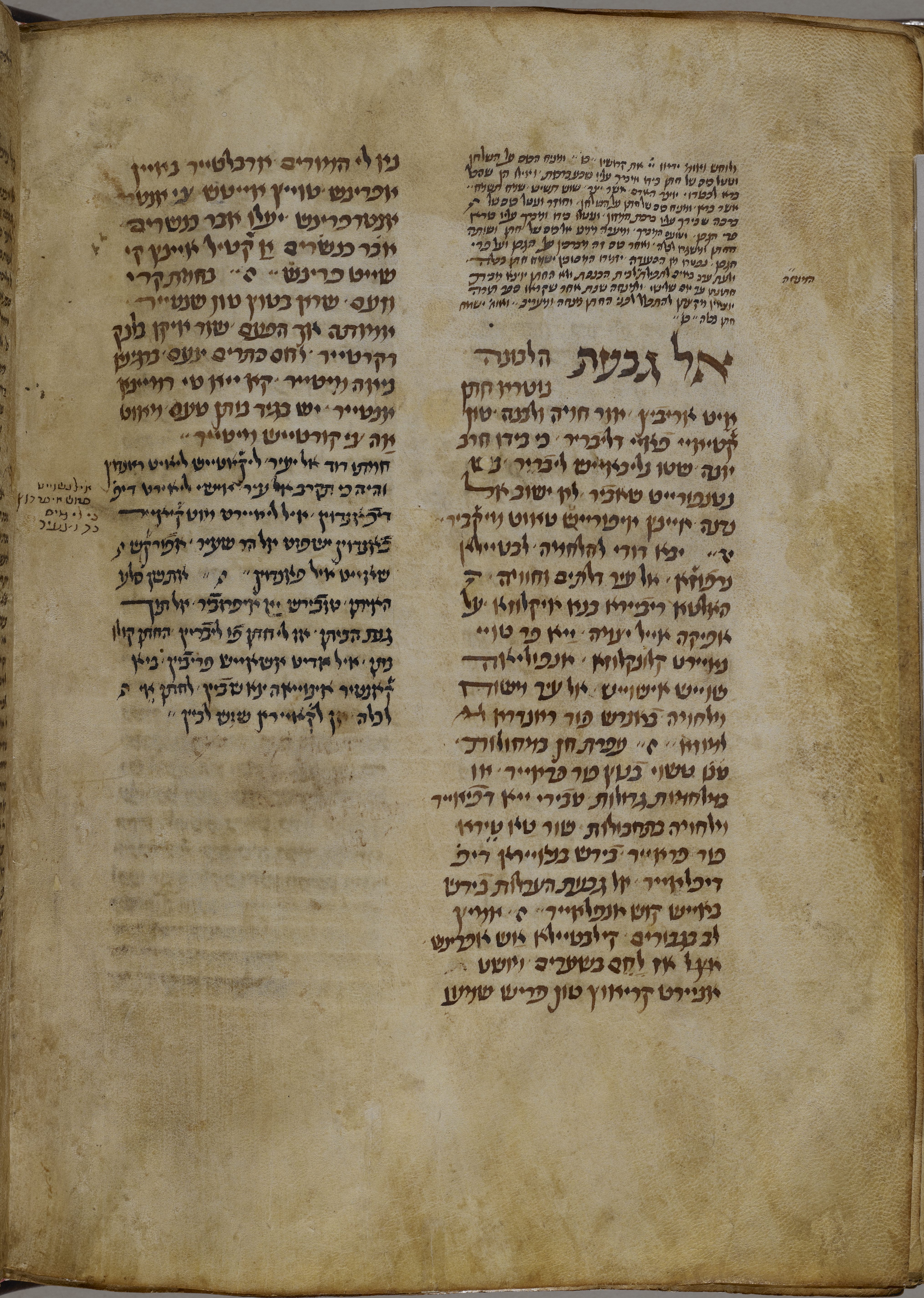 This richness is reflected in the works assembled in this case, which include obviously Jewish works like prayer books and legal treatises, as well as Hebrew versions of works of general interest. Of particular importance is the Mahzor Vitry manuscript, which is the earliest surviving record of the emerging practices of Ashkenazi Jewry.