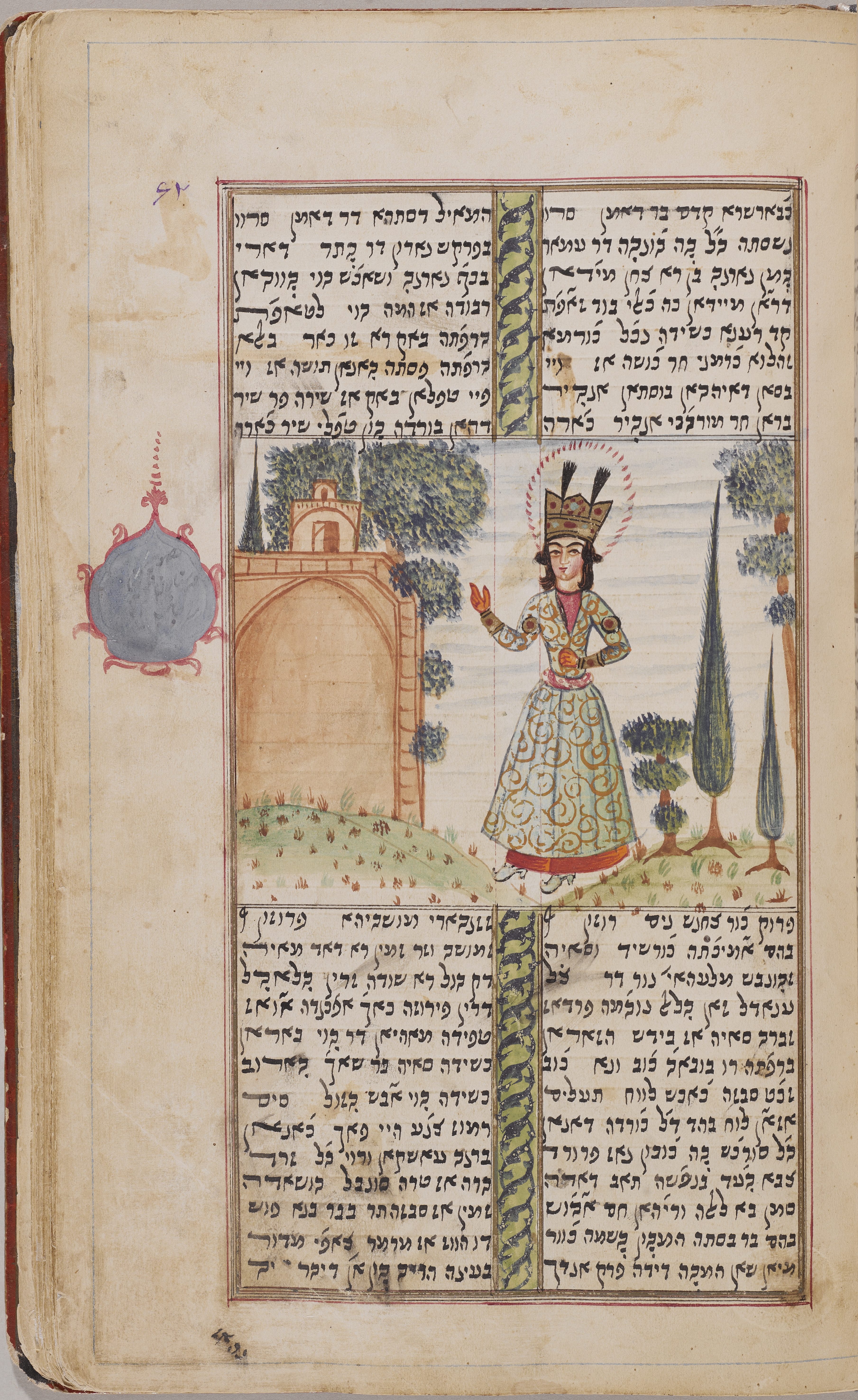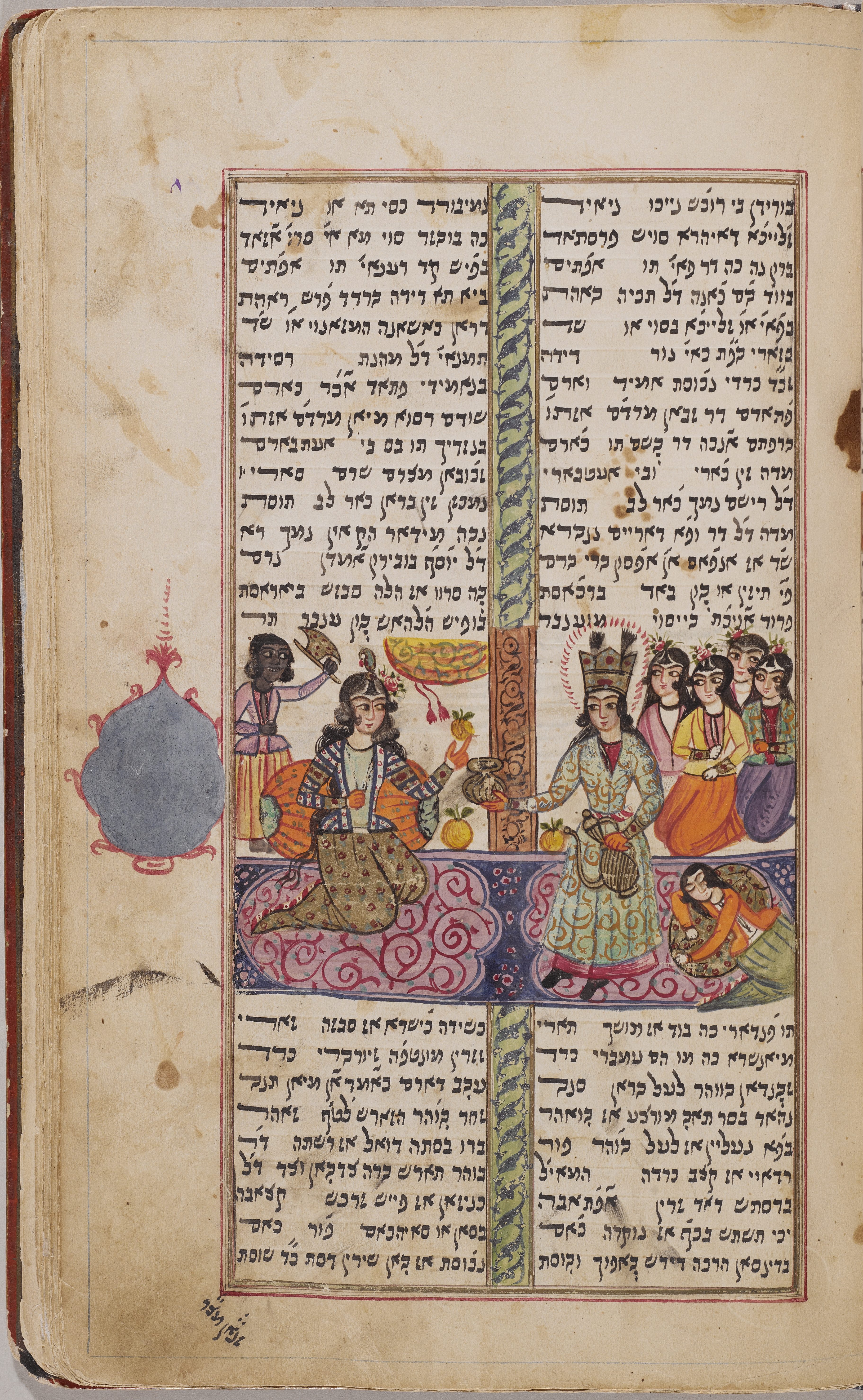 Persian Jews had (and have!) great pride in their own history and culture. The story of the scroll of Esther took place in Persia, and Esther and Mordecai play an important role in subsequent Jewish legends from these lands. The influence of Jewish tradition on Islam, and vice versa, is evident in our manuscript of Yusuf and Zulayka, which preserves a version of the story of the biblical Joseph. As much as anything, the stunning beauty of the art in the manuscripts and on the ketubbot attests to the rich culture of the Jews in Persia.